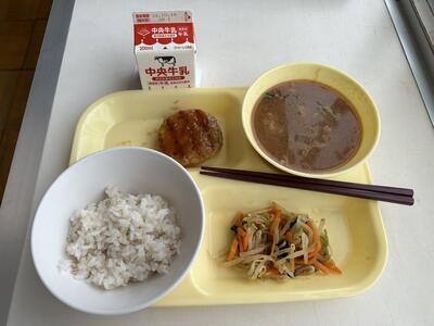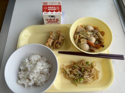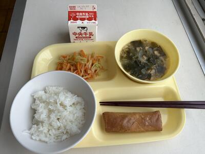 ◆本日の給食はこちら↓ 春巻きのある中華風のメニューでした。