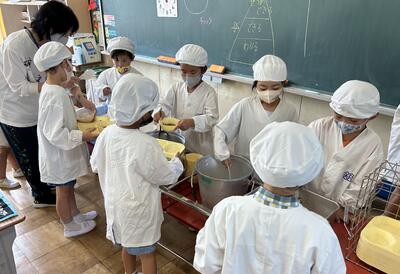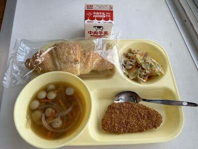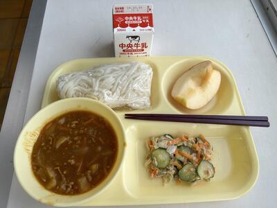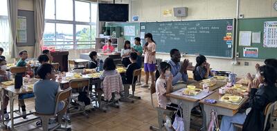 子どもたちの大人気メニューでした。ALTのガリバも児童と一緒に楽しく会食しました。