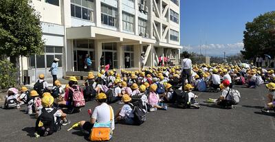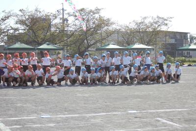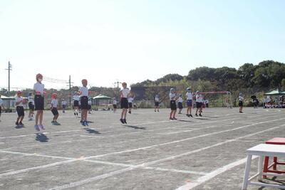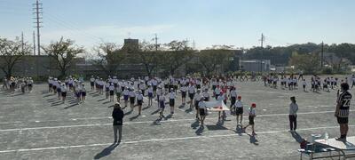 開会式の隊形で、式の流れを確認しました。1年生は小学生になって初めての運動会ですが、6年生をはじめとした上級生が並ぶ様子を見て練習することができました。また、代表の6年生が、とても”はつらつ”としたあいさつをしてくれたので、その後に続くみんなも「がんばるぞ!」という気持ちの入ったあいさつに自然となり、ビックリするほど立派でした!