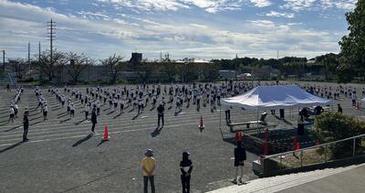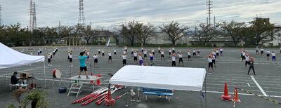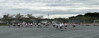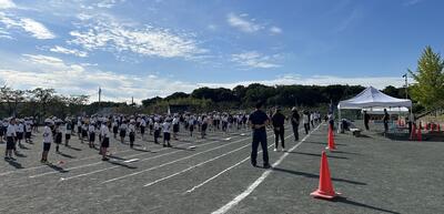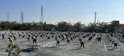 ◆運動会での、一番初めの演技は「ラジオ体操」です。今日の朝、全校で練習しました。「今、身体のどの部分を伸ばしているか、動かしているか」と意識して行おうと練習しました。先生たちも一緒に行いますが、とてもいい運動になります!