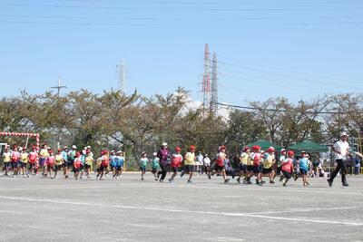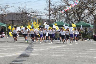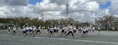 ・開会式の入場、退場を全校で練習しました。児童会役員が先頭です。