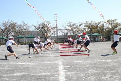 午後、5・6年生と職員とで運動会準備を行いました。みんなでしっかりできました!