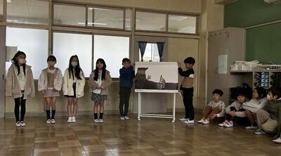 すらすら、気持ちを込めて音読(ほとんど暗唱)していて驚きました。また、場面ごとの歌も歌って、場面ごとに班で分担しながら「みんなで」の発表でした!
