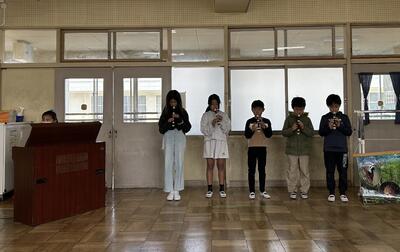 ・がんばったことを1年生と5年生の代表が発表しました。緊張しながらも立派でした!