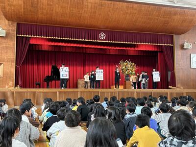 ・児童会長さんが、頑張りたいことを発表してくれました。チャレンジしてみよう!という思いに、みんなから拍手が送られました。