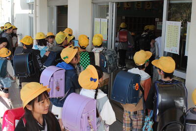 ◆今日は、1年生から6年生までの一斉下校2回目でした。幸いなことに小雨もやみ、傘をささなくても大丈夫な天気でした。1年生は、まだまだ分団ごとの並ぶ場所が分からないので、班長さんに迎えに来てもらうのですが、みんなの協力があって下校時間より少し前に学校を出発することができました。