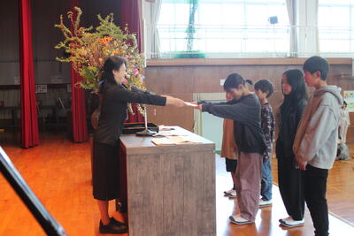 体育館で、各学年の代表者が修了証書を受け取りました。この1年で成長したことに胸をはって進級してください!