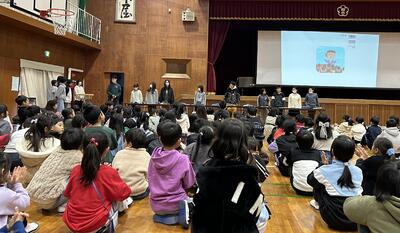 ◆今日は、日本なわとびアカデミーの講師3名にお越しいただき、なわとび講座を行いました。はじめに、デモンストレーションを見学しました。なわとびのギネス記録を持っていて、五重跳びをはじめ、いろいろな技を見せてもらえました。