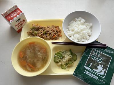 給食は久し振りの「手巻きご飯」でした。のりにご飯をのせて、具をのせて、いつもより少し時間がかかりましたが、おいしくいただきました。後片付けでは、配膳室でいつも給食委員のお兄さん、お姉さんが手伝ってくれます。優しい言葉をかけてくれて、5、6年生はとても頼りになります!
