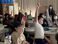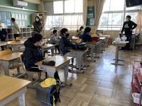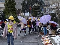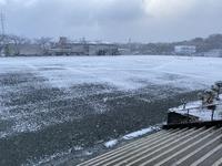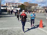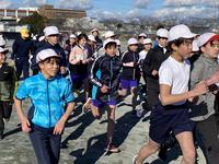 朝は雪がちらつき、日中も冷たい風が吹き荒れる中ですが、5・6年生が持久走大会の試走を行いました。