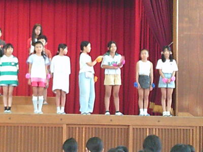 今日の児童集会は、4年生の発表でした。「ありがとうの花」の歌に合わせてかわいい花がたくさん咲きました。