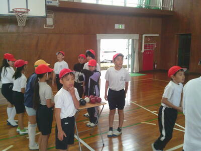 地域の方のご厚意で、ボッチャ体験教室が行われました。4年生全員がボッチャにチャレンジしました。