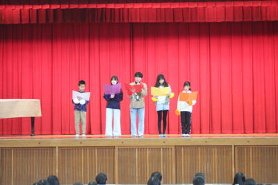 前期の「やかたんレンジャー」から後期の「やかたんフラワーズ」へと引き継がれた児童会。さっそく児童集会で楽しいゲーム(〇×クイズ)を企画してくれました。