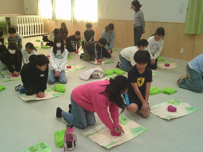 心肺蘇生講習会(5年生) 投稿: 管理 (12/05) カテゴリー: 授業の様子 12月2日(火) 5年生を対象に「心肺蘇生講習会」が行われました。 心臓マッサージのやり方やAEDの使い方、緊急時の対処法などを学び、実際に心臓マッサージの体験も行いました。みんな一生懸命取り組んでいました。 Tweet -