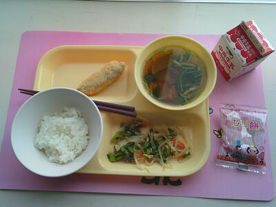 米粉ほきフライ 菜の花とささみのあえ物 はまぐりの吸い物 ひしもち