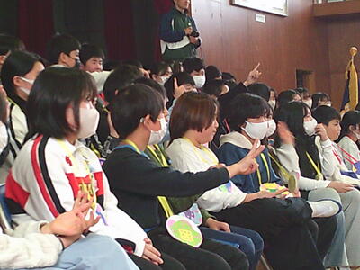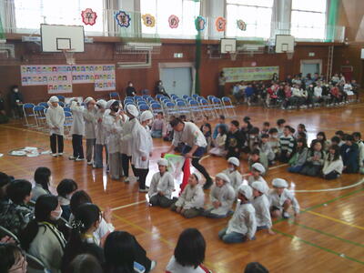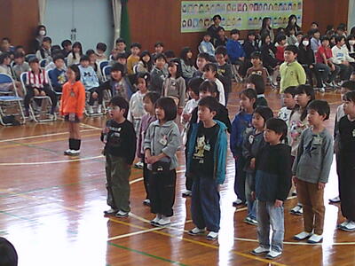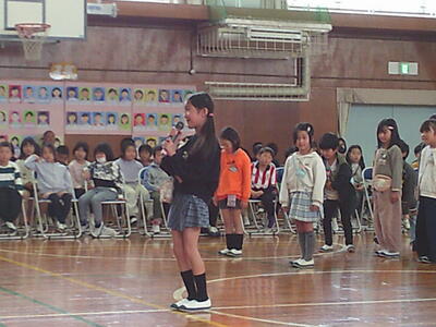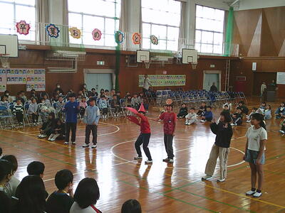 5年生は、ジャンボリーミッキーを全校で踊るよう声をかけたり、以前担任された先生からのメッセージを歌とともに詠みあげました。