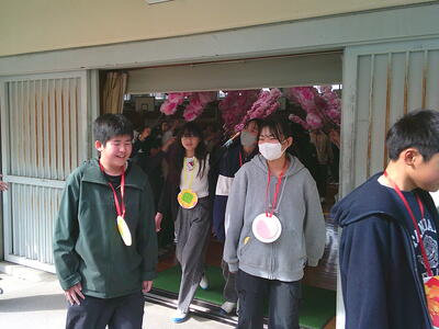 6年生を送る会が行われました。1年生と手をつないで入場した6年生。プレゼントのメダルをかけてもらってとっても嬉しそうでした。5年生が全体を上手にリードしてとても素敵な会になりました。