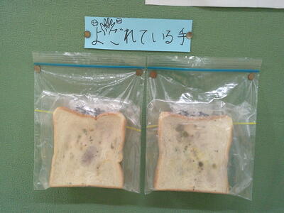 子どもたちは、毎日毎日カビの生える様子を観察しては、手洗いの大切さを実感しているようです。
