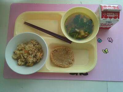 1年生にインタビューすると、「お月さまのうさぎがおいしかった」「野菜はにがてだけど、きょうのお野菜はおいしくて、野菜がすきになったよ」「ふりかけ最高!」という感想が寄せられました。1年生ももりもり食べてくれてとても嬉しいです。