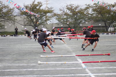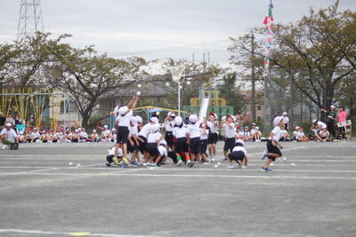 棒引きの練習が始まりました。学年ごと、男女別に戦います。狙いを定めた棒に誰よりも早く到着して、一人でさっさと運ぶ子、周りをみて助っ人に向かう子いろいろな形で頑張っていました。今回の結果は、すべて僅差!今後の練習や作戦次第で勝敗の行方が決まりそうです。当日もきっと白熱した戦いになることが予想されます。お楽しみに!