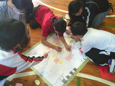 高齢者疑似体験を行いました。体の動きにくさや視界の違いを体験することができました。いろいろと考える機会になったようです。