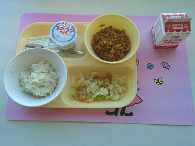 でした。どんな姿で登場しても、カレーは大人気!今日は、デザートのヨーグルトもあってみんな大満足でした。