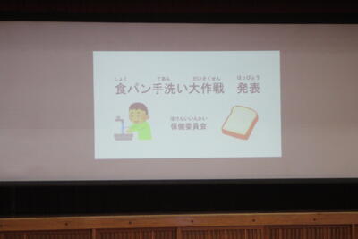 11月17日(月)の児童集会で保健委員会の発表が行われました。以前、学校ブログで紹介させていただいた食パンのカビ実験についての報告でした。みんな手洗いの大切さに気付くことができました。