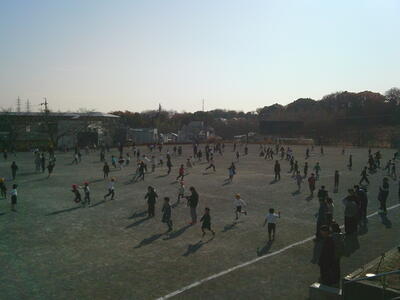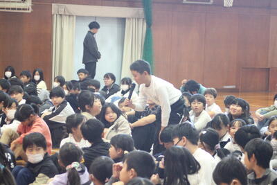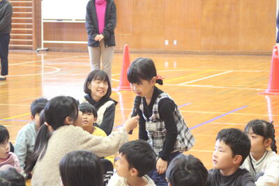 各クラス5人ずつと「やかたんフラワーズ(児童会役員)」が鬼になり、全校児童が一斉に逃げ回る壮大な氷鬼となりました。寒い中でしたが、みんな笑顔で元気いっぱいに逃げたり、追いかけたりしていました。この企画をもとに、もっと全校児童の仲が良い舘小学校になっていくとよいですね!
