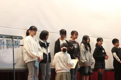 5年生は、ボディパーカッションを披露しました。音楽は一切なく、みんなの手拍子や体を打つ音での表現でした。5年生全員が一体に音を奏でる姿やそろって動く姿にみんな真剣な目で見入っていました。とてもすばらしい発表でした。