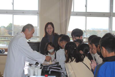 愛知県にある「徳吉醸造株式会社」よりしょうゆ博士が来てくださいました。できたてのしょうゆのいい匂いの中で、しょうゆについていろいろなことを学びました。