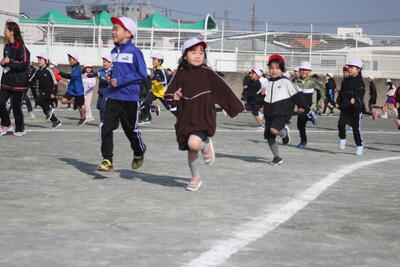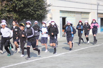 今年度も耐寒かけ足が始まりました。みんな元気いっぱいに走っていました。かけ足中に流れる曲も、R7年度バージョンになり、みんな楽しそうに曲に合わせて走っていました。今年度も、「時間に挑戦」〇〇m走(〇は学年によって変わります)と「距離に挑戦」〇分間走のどちらかにエントリーして記録会に臨みます。応援よろしくお願いします。